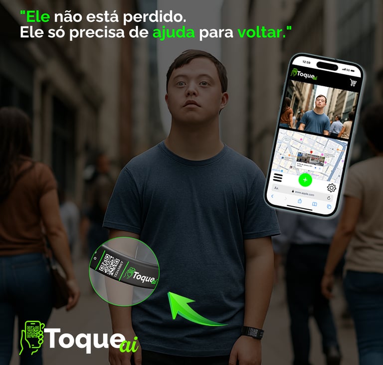 Inovação que une tecnologia e cuidado. Uma história real, que poderia acontecer com qualquer família. Um avô sai para levar o neto na escola, mas algo inesperado acontece: ele sofre um “apagão” e volta pra casa desorientado. Casos como esse mostram a importância de unir tecnologia e cuidado. A pulseira Toque Ai foi criada exatamente para isso — reconectar o que mais importa.